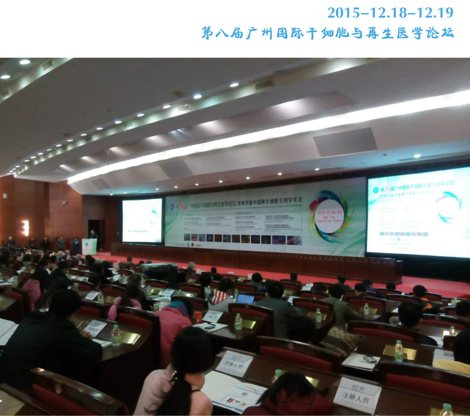 “第八屆廣州國際干細胞與再生醫(yī)學論壇”于2015年12月18日-19日在廣州白云國際會議中心4號樓1樓越秀華堂如期召開。本次大會邀請到了名譽主席中科院院士,同濟大學校長裴剛教授致辭,以及2015新增中國科學院院士、中科院動物所副所長周琪教授來做作報告,同時還邀請到了法國國家科學研究中心jean paul thiery教授、劍橋大學patrick maxwell教授,以色列魏茲曼科學中心jacob hanna等外國專家教授來作報告,參會人數(shù)達200多人。