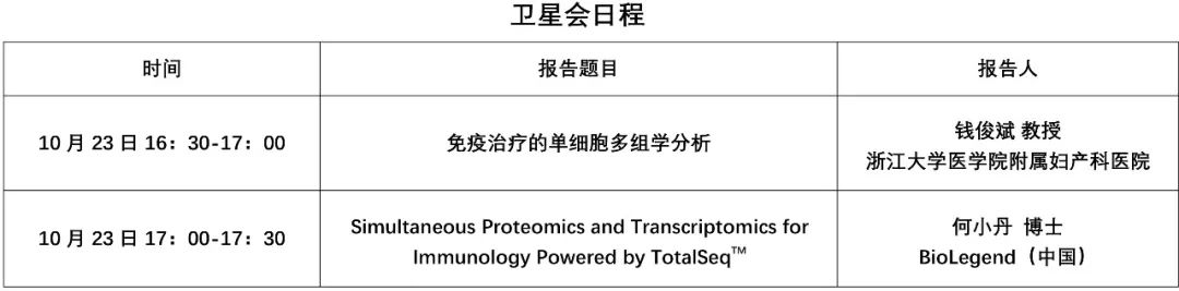 除了日常的展臺活動,我們誠摯的邀請您10月23日下午16:30-17:30在腫瘤免疫與腫瘤免疫治療第七分會場參加我們的衛(wèi)星會,達科為&BioLegend將為大家?guī)碇黝}為“TotalSeq 技術助力免疫學研究及免疫治療的單細胞多組學分析”的衛(wèi)星會,以下是會議日程安排,歡迎您準時蒞臨,現(xiàn)場還有精美禮品,先到先得哦!