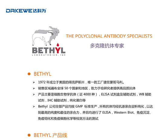 多克隆抗體專家BETHYL